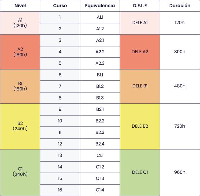 Aunque no figura en la tabla, también es posible realizar el nivel superior: C2.